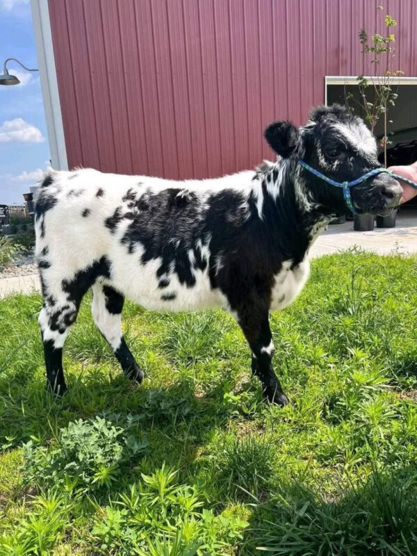 Meet Mimi, our stunning white and black mini Highland heifer! At just the right age for bonding and training, Mimi is gentle, curious, and full of personality. She has a beautiful fluffy coat with unique markings that make her stand out, and she’s been well-socialized around people and other animals. Mimi is healthy, easy to handle, and will make a wonderful addition to any small farm, petting zoo, or family homestead. Don’t miss the chance to own this sweet, eye-catching mini Highland!