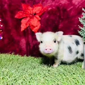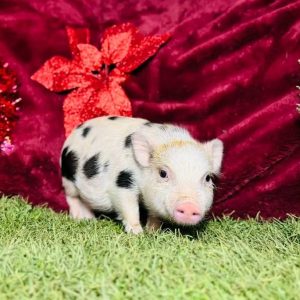Say hello to Mispa, an adorable 8-week-old Mini Juliana piglet full of personality and charm! Known for their intelligence, gentle nature, and unique spotted patterns, Mini Juliana pigs make wonderful pets and companions—and Mispa is no exception.