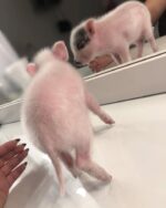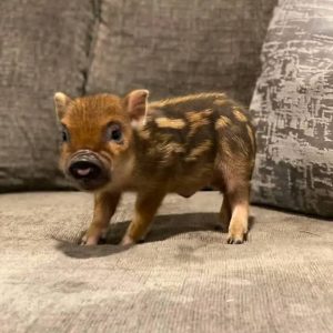 Mini Juliana pigs are highly trainable, clean animals that can adapt well to both indoor and outdoor environments when properly cared for. Mispa’s petite size and sweet nature make her especially appealing for families or first-time pig owners.