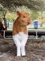 Mini Highland cattle are known for their gentle nature, hardiness, and manageable size, making them a great choice for small farms, homesteads, hobby farmers, or breeding programs. Rony is healthy, active, and well-socialized, making him easy to handle and adaptable to new surroundings. His thick, fluffy coat and classic Highland appearance make him not only a practical addition to your farm but also a beautiful one.